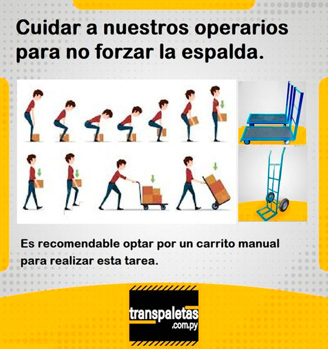 Los carritos manuales no sólo son una herramienta para trasladar más rápido nuestras mercaderías, si no también para cuidar a nuestros operarios de posibles lesiones que puedan sufrir por cargas pesadas.